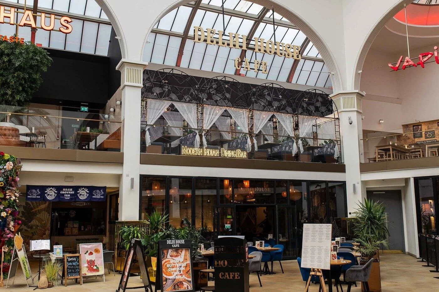 Delhi House Café, located in Manchester’s Corn Exchange, was envisioned as a destination that captures the vibrancy of modern Delhi and the raw energy of industrial Manchester. The Lamba family wanted a space that celebrates contemporary Indian culture while staying rooted in heritage.