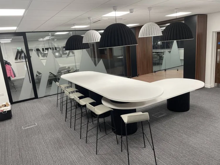 Design Metric was appointed to deliver a full FF&E package for Montirex’s new Liverpool headquarters — the flagship workspace for a fast-growing performance wear brand. The objective was to interpret Montirex’s distinctive brand identity into a cohesive, functional environment through a design-led, biophilic approach.