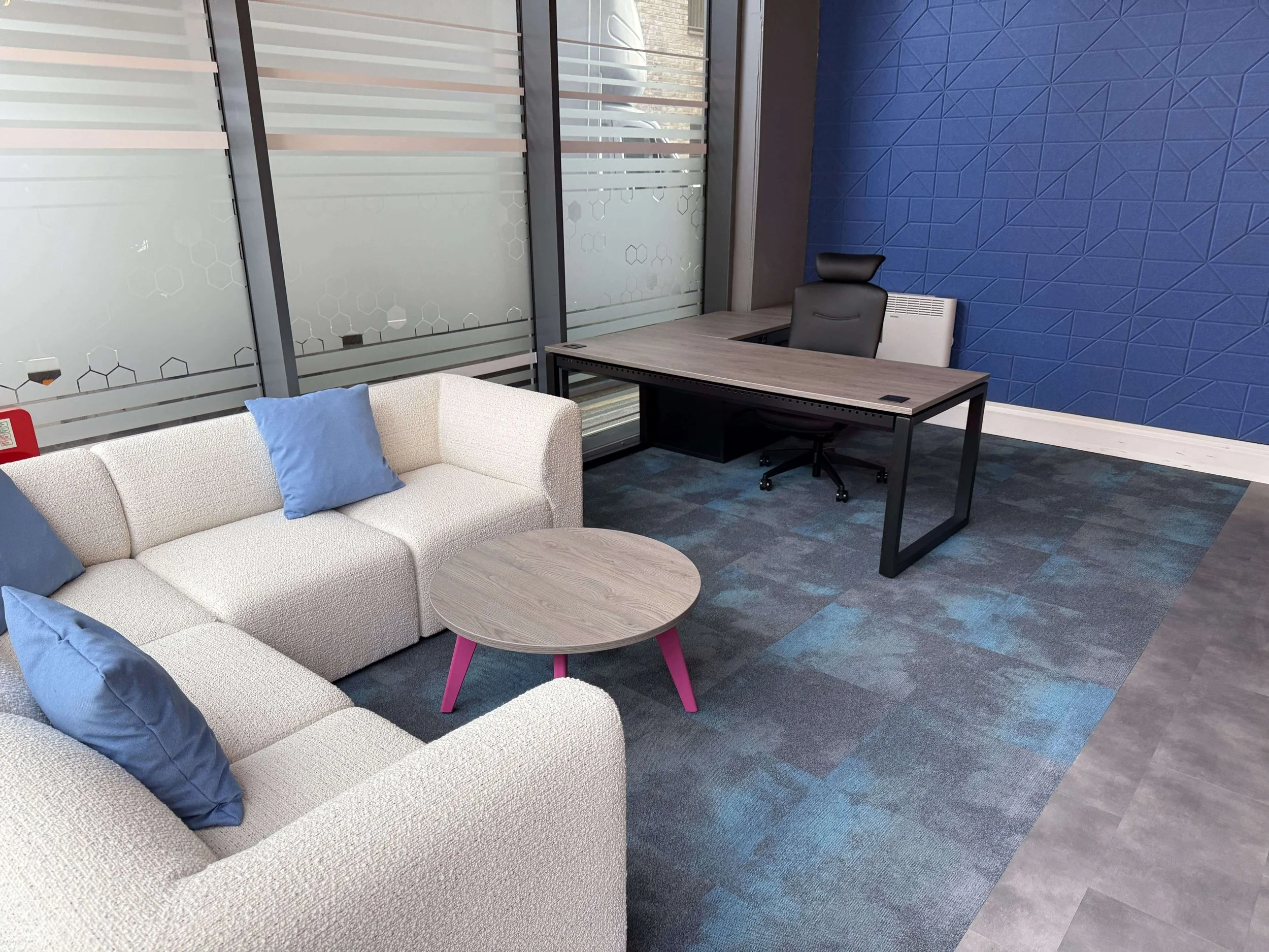 Flooring tied the layout together: a considered mix of Tarkett Loose Lay LVT in slate and wood effects, paired with Tarkett Grezzo carpet tiles to support zoning, comfort and durability.