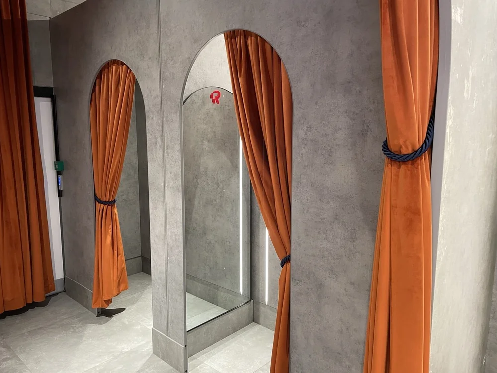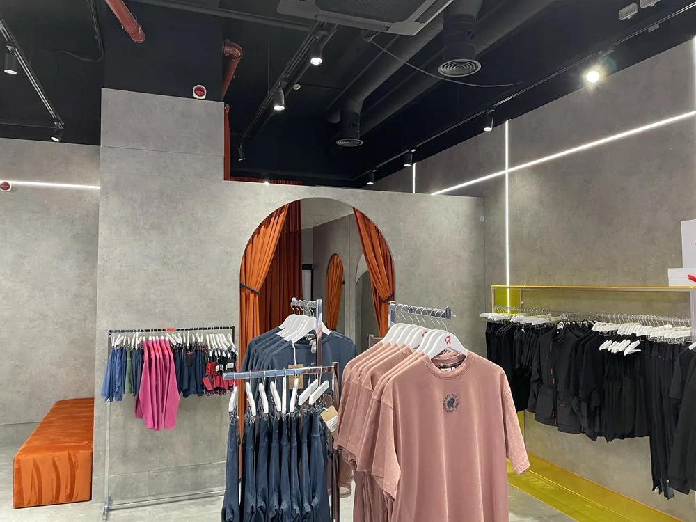 Bespoke acrylic display units, exposed ceilings, and branded curtain zones created a space that feels both industrial and intimate — perfectly aligned with the brand’s energy.